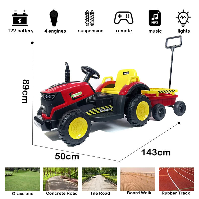 Kids Electric Pedal Tractor With Tailer High Quantity Battery Powered Tractor Car Toy Ride on Toy 6 Wheels